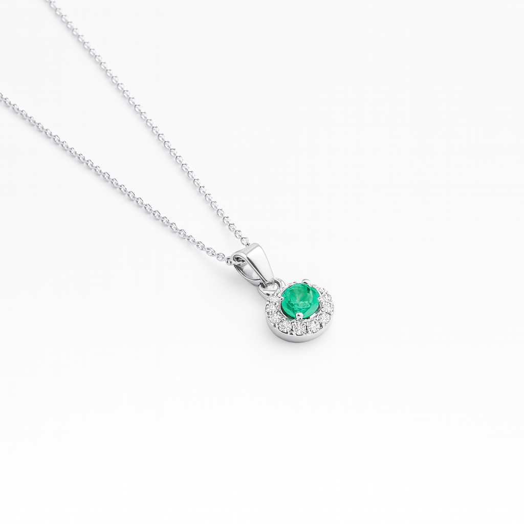 Numero de piedras: 1 Esmeralda corte round + 12 Diamantes