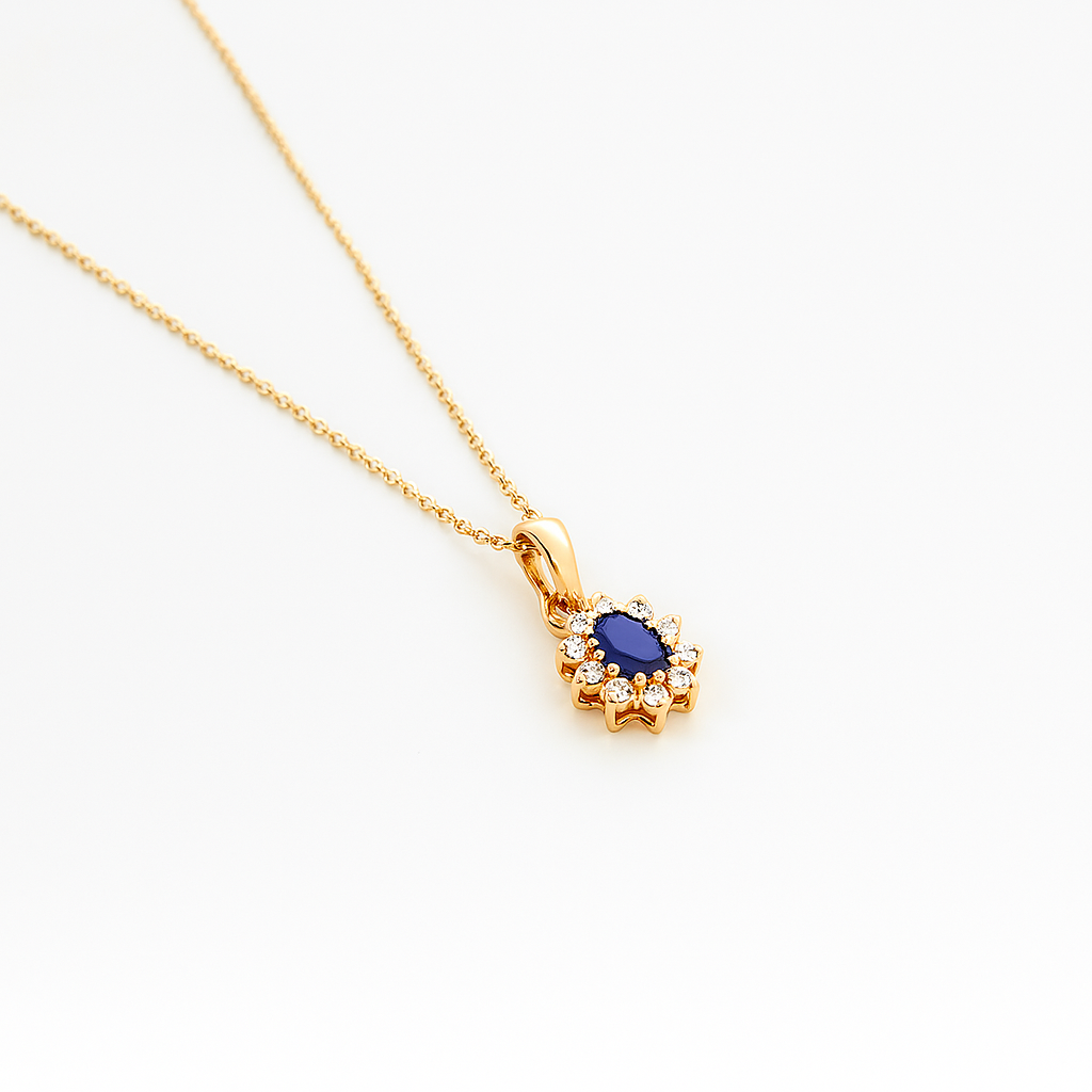 Numero de piedras: 1 piedra Oval zafiro + 10 Diamantes
